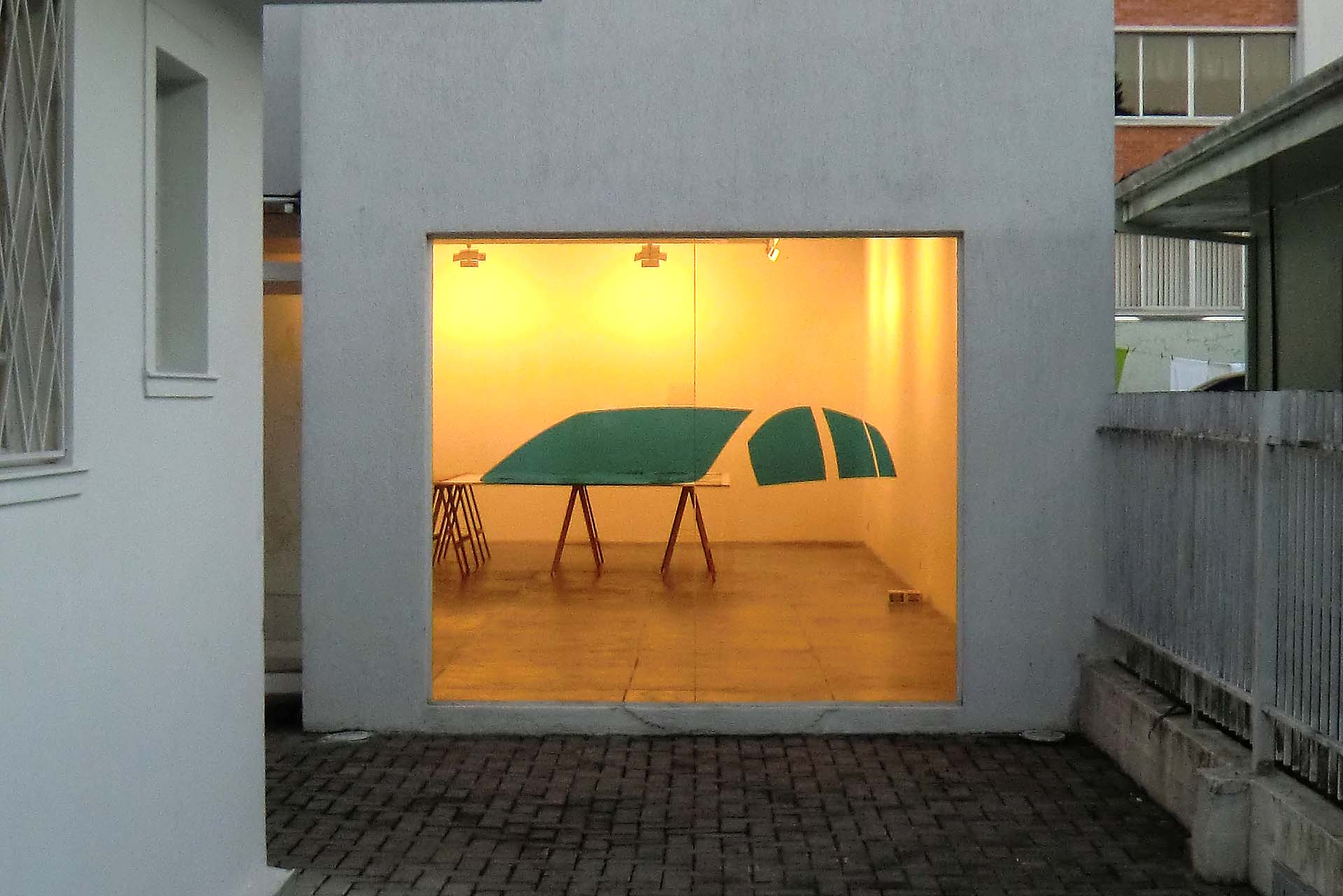 No anexo da Galeria Ana Luiza apresentou um trabalho inédito, projetado especificamente para a sua janela-vitrine. Um insulfilm esverdeado, usado em carros, será aplicado sobre o vidro, e depois recortado. O desenho resultante reproduzirá, sobre a janela ortogonal do espaço, os contornos das janelas de um carro, em escala real, visto em perspectiva.