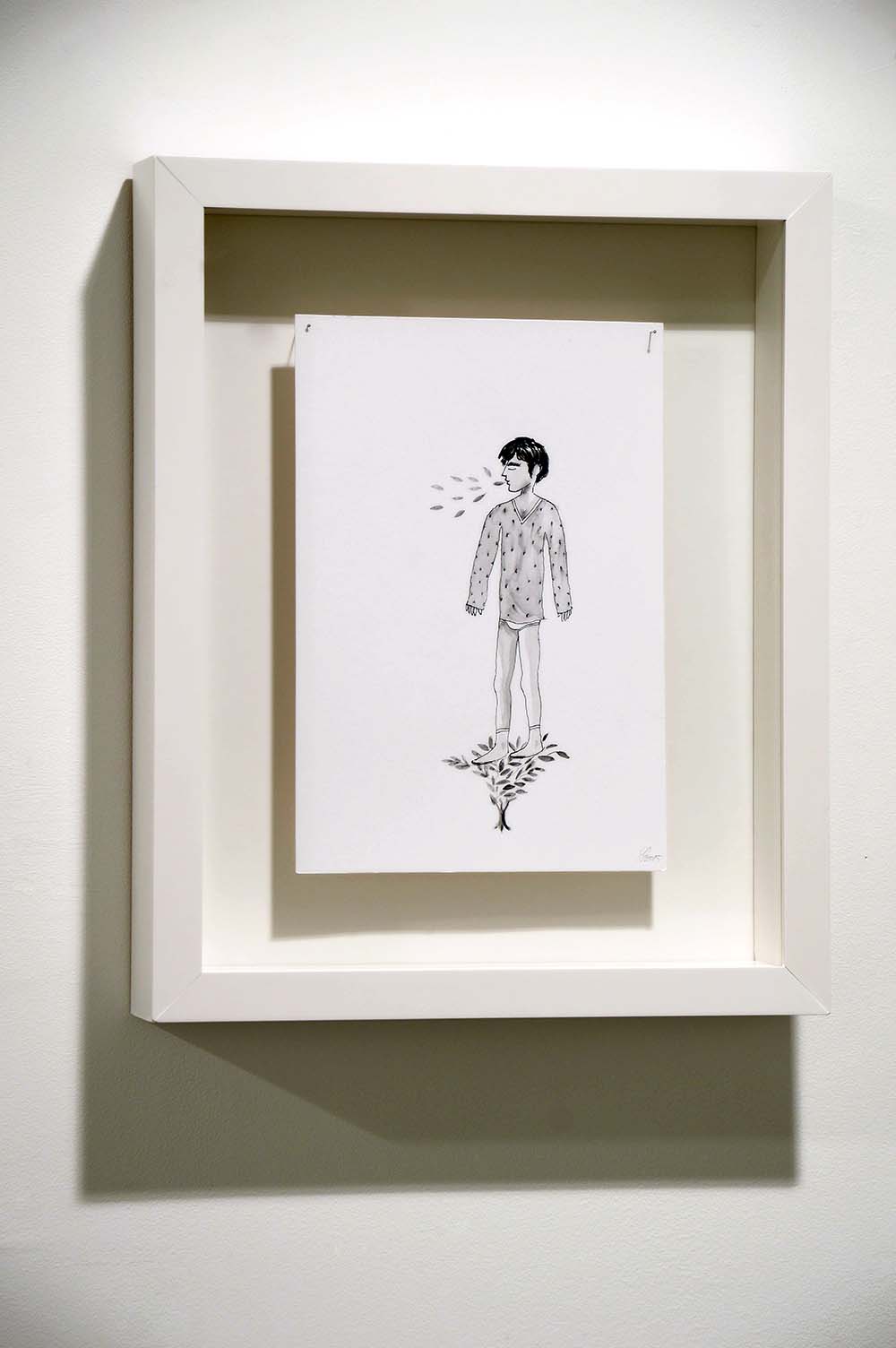 Fernando opta por exibir desenhos em aquarela e fotomontagens, o artista usa o desenho como principal meio para sua elaboração artística. Seus desenhos são histórias que giram em torno da obsessão por seu múltiplo. Na maioria são realizados em nanquim sobre papel, onde o traço é preciosamente elaborado. São cenas oníricas e delicadas, mas que utilizam símbolos e jogos de sedução, tornando o trabalho inquietante.