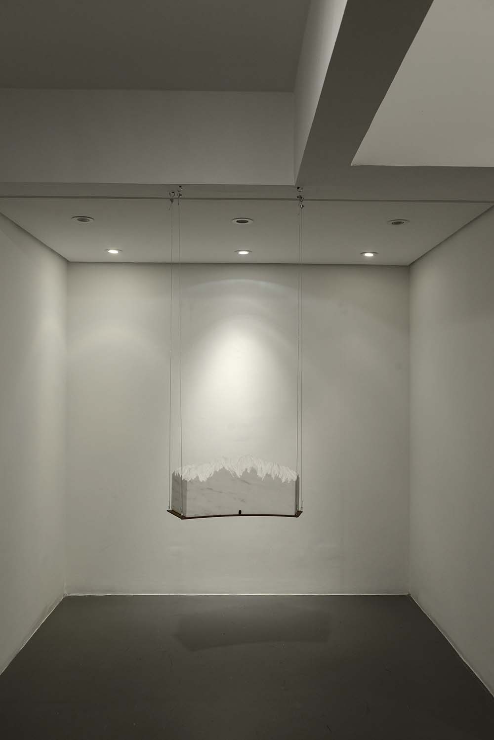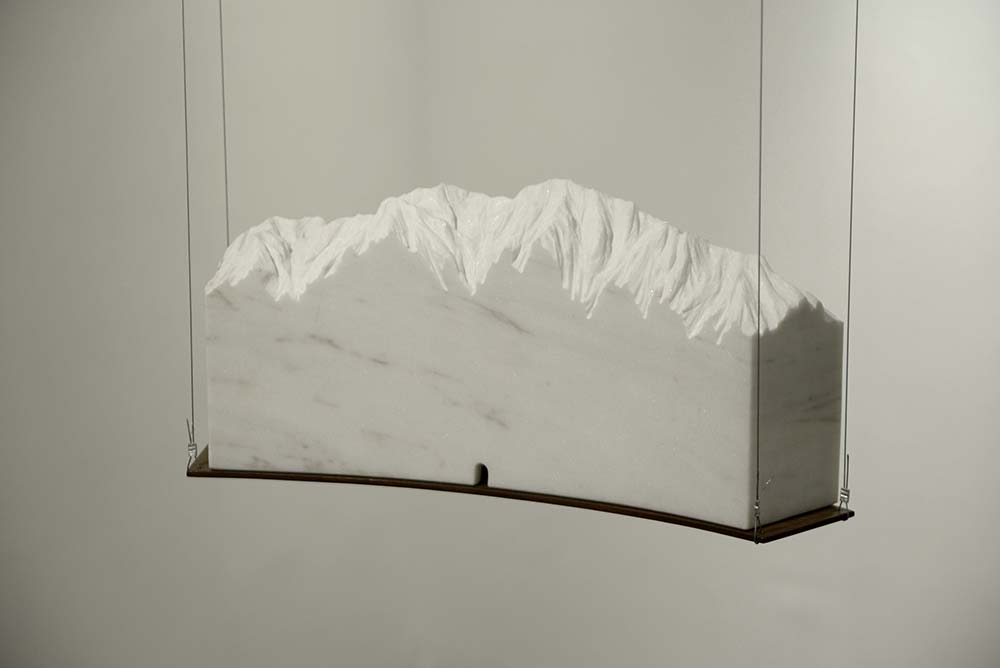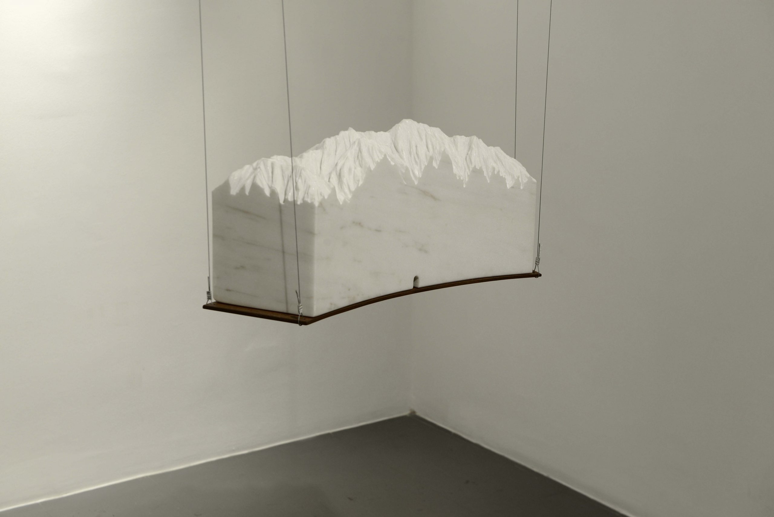 Mármore branco de Estremoz, ferro e cabos de aço.