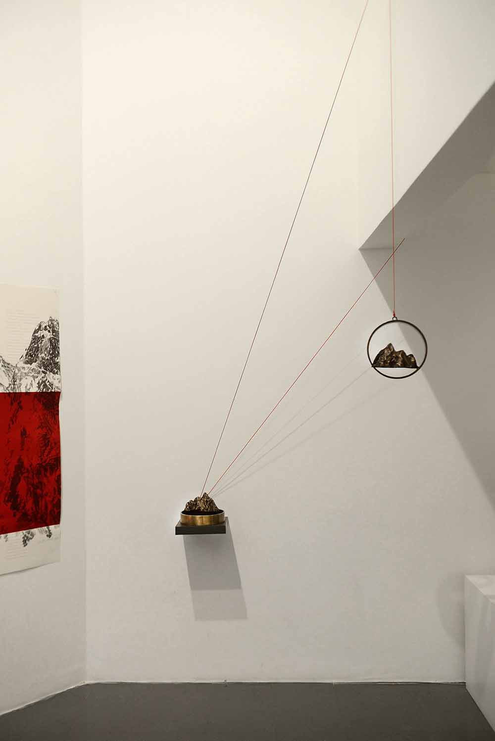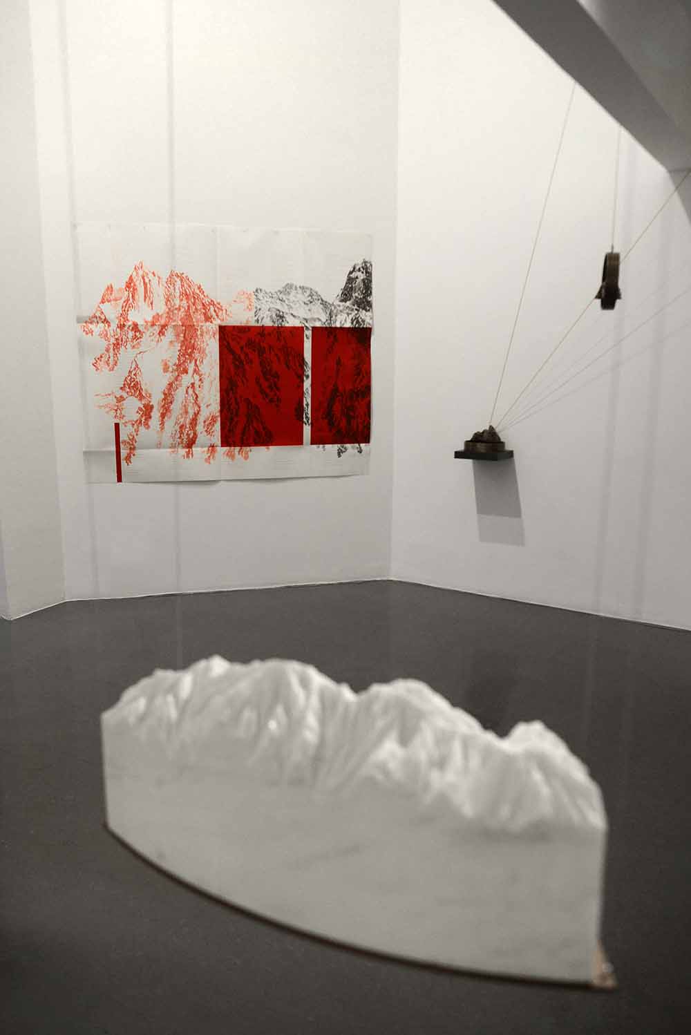 Os desenhos minuciosos, revelam tanto os cumes bem delineados da montanha ou simplesmente as suas encostas, quase abstratas, por onde podemos fazer a nossa caminhada. As esculturas em bronze ou em alumínio, jogam com a problemática da escala e podemos, talvez, conter o mundo nas nossas mãos.