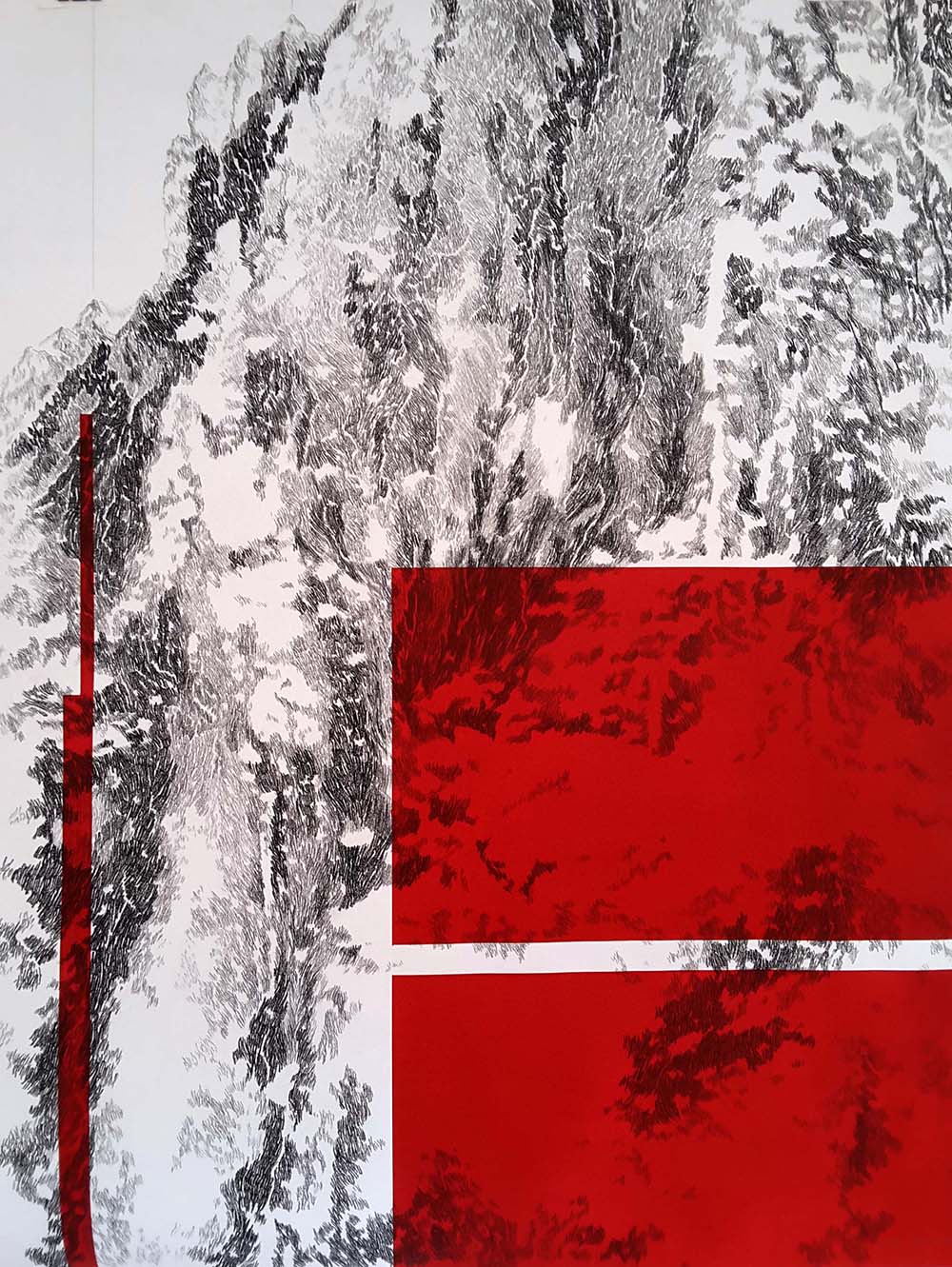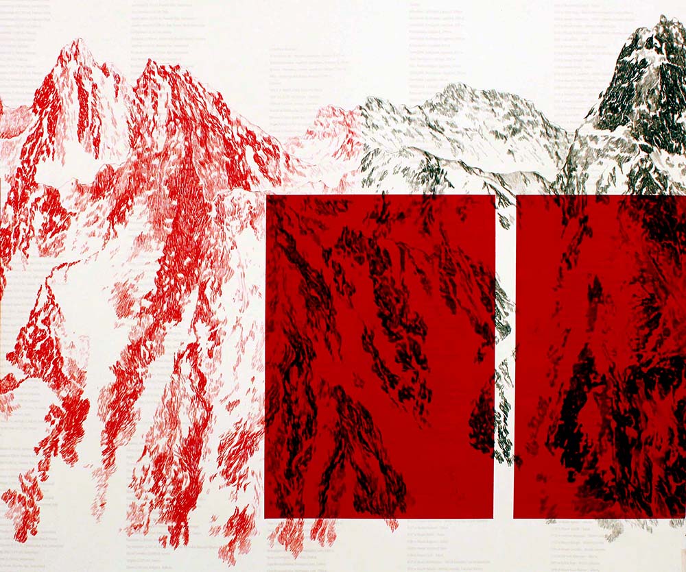 Um tema recorrente no trabalho de Cristina Ataíde que nesta exposição tem uma presença forte é a montanha. Nada melhor materializa a ideia da ‘vida em devir’. Ataíde é fascinada pela montanha. Pela experiência física do estar, mas também pela experiência metafísica que aquela pode possibilitar. Cativa-a o ar rarefeito, mas mais puro; deslumbra-se com a pele da montanha; e fica hipnotizada pelo contraste de escalas entre o seu corpo e o corpo da montanha. A montanha incita também ao conceito de movimento. De alguém que confrontado com a extraordinária massa e peso de uma montanha, e convidado a percorrer os seus caminhos, as suas veias.