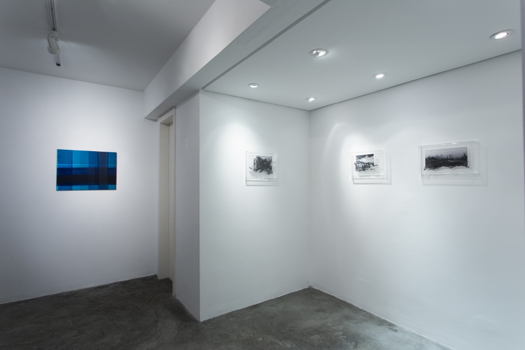 Enquanto os limites da reflexão da luz pelas cores é a fonte de investigação poética de Tatiana, Marilde opta por criar um intenso e sedutor campo semântico num plano obliterado de luz. A negritude salta do fotográfico para tingir, em diferentes densidades, o papel e o tecido que a partir de um ponto de contato improvável, extravasam fisicamente os limites do quadro.